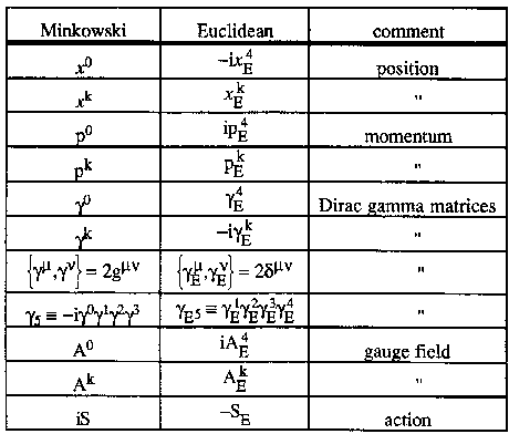 We employ standard conventions for Wick rotating to Euclidean space-